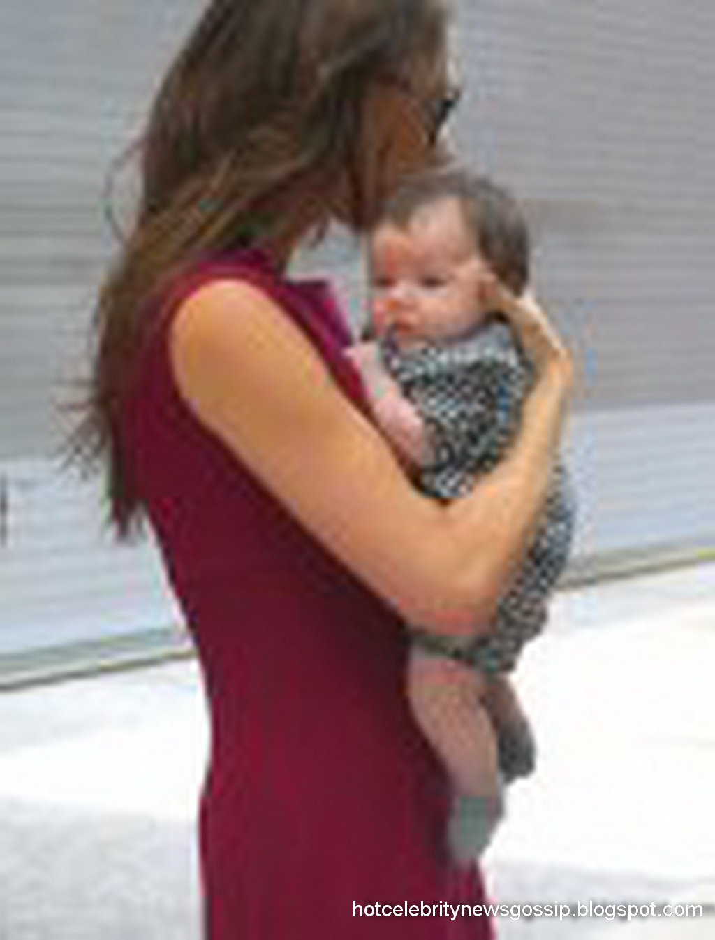 The sweet mom and daughter looked lovely, as this hot celebrity donned a red dress and suede boots while 2-month-old Harper sported a black and white checkered onesie.